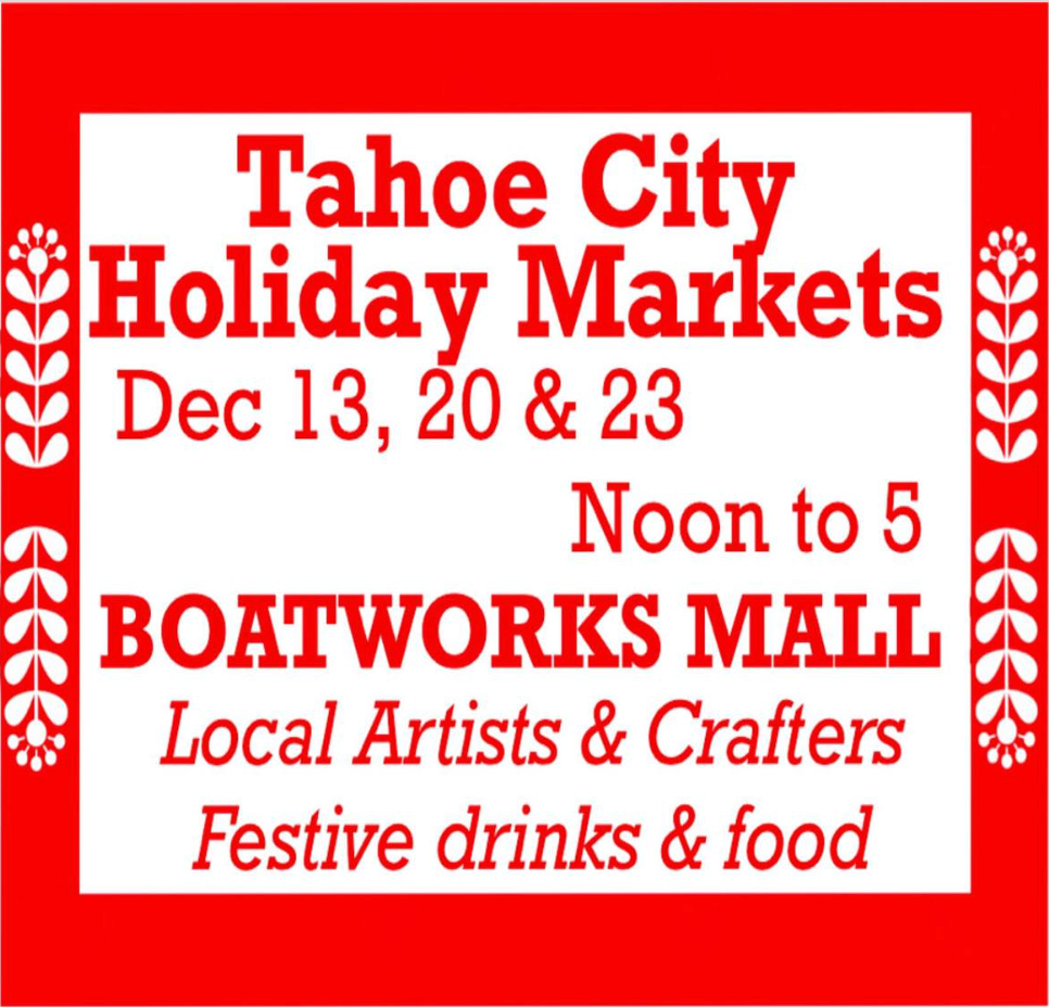 Celebrate the season at the Tahoe City Holiday Market at Boatworks Mall! Browse a beautiful selection of locally handmade arts and crafts at the Tahoe City Holiday Market—perfect for finding unique holiday gifts.